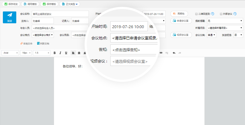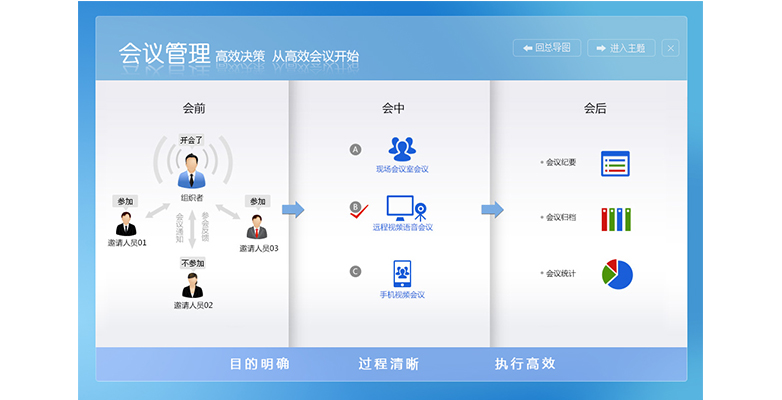用于會(huì)議通知、會(huì)議資料的發(fā)出、會(huì)議室的查看,到時(shí)提醒,對(duì)參會(huì)情況的事先了解,會(huì)議紀(jì)要的總結(jié)和歸檔等。