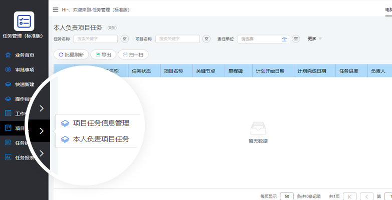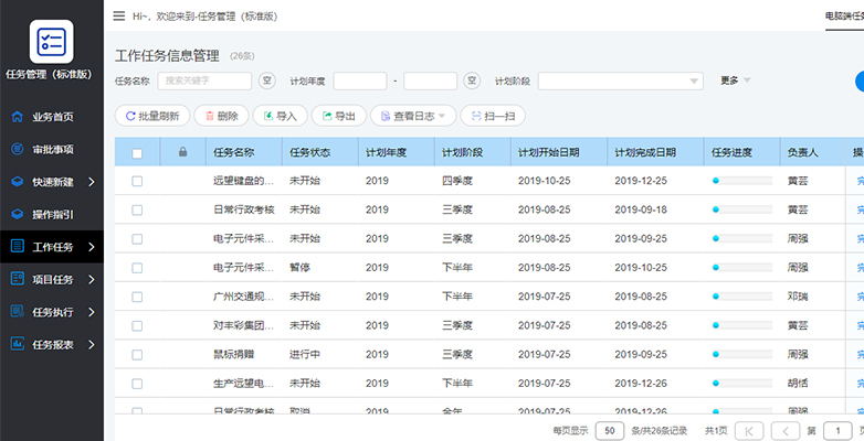 通常任務(wù)計(jì)劃執(zhí)行可按月、按周進(jìn)行,執(zhí)行時(shí)可直接讀取已經(jīng)過(guò)審批的項(xiàng)目任務(wù)計(jì)劃和要事任務(wù)計(jì)劃。