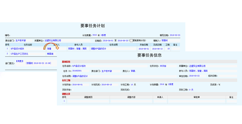 支持對(duì)計(jì)劃內(nèi)容編輯、發(fā)起、修改和陳述。發(fā)起計(jì)劃自動(dòng)轉(zhuǎn)日程,并及時(shí)提醒和預(yù)警計(jì)劃執(zhí)行情況。