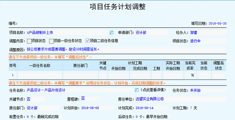 項(xiàng)目立項(xiàng)審批完成后,相關(guān)的項(xiàng)目信息自動(dòng)保存,之后相關(guān)部門(mén)(如運(yùn)營(yíng)管理部門(mén))即可編制項(xiàng)目任務(wù)的相關(guān)計(jì)劃了。