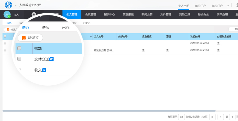 支持多維度查詢處理過(guò)的公文,并支持excel導(dǎo)出。支持收發(fā)查詢和收發(fā)統(tǒng)計(jì),便于對(duì)過(guò)程和結(jié)果進(jìn)行分析。