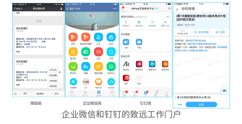 與微信服務(wù)號(hào)、企業(yè)號(hào)、企業(yè)微信、釘釘?shù)冗M(jìn)行整合,提供組織結(jié)構(gòu)同步、移動(dòng)信息門(mén)戶,用戶可直接進(jìn)入?yún)f(xié)同進(jìn)行移動(dòng)辦公。