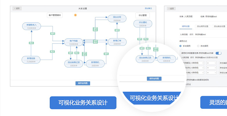 高度抽象的數(shù)據(jù)流轉(zhuǎn)關(guān)系設(shè)計(jì),創(chuàng)造性的可視化展現(xiàn)形式,業(yè)務(wù)數(shù)據(jù)間的復(fù)雜關(guān)系僅需通過(guò)“調(diào)用”、“推送”配置,即可滿足業(yè)務(wù)表間數(shù)據(jù)聯(lián)動(dòng)、業(yè)務(wù)流轉(zhuǎn)。